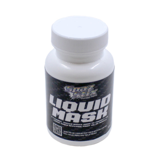 Made in the USA! Liquid mask is a spray-able, brush-able coating used to mask and protect your project when applying paint, trim colors, lettering, insignias, etc on plastic models and R/C car and truck bodies.
