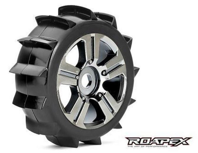 Paddle 1/8 Buggy Tires, Mounted on Chrome Black Wheels, 17mm Hex (1 pair) - ROPR5004-CB