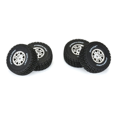 Mirage TT F/R Tires Mounted 12mm Hex Satin Silver Impulse (4) for Arrma Mojave Grom