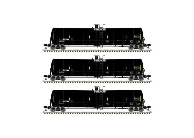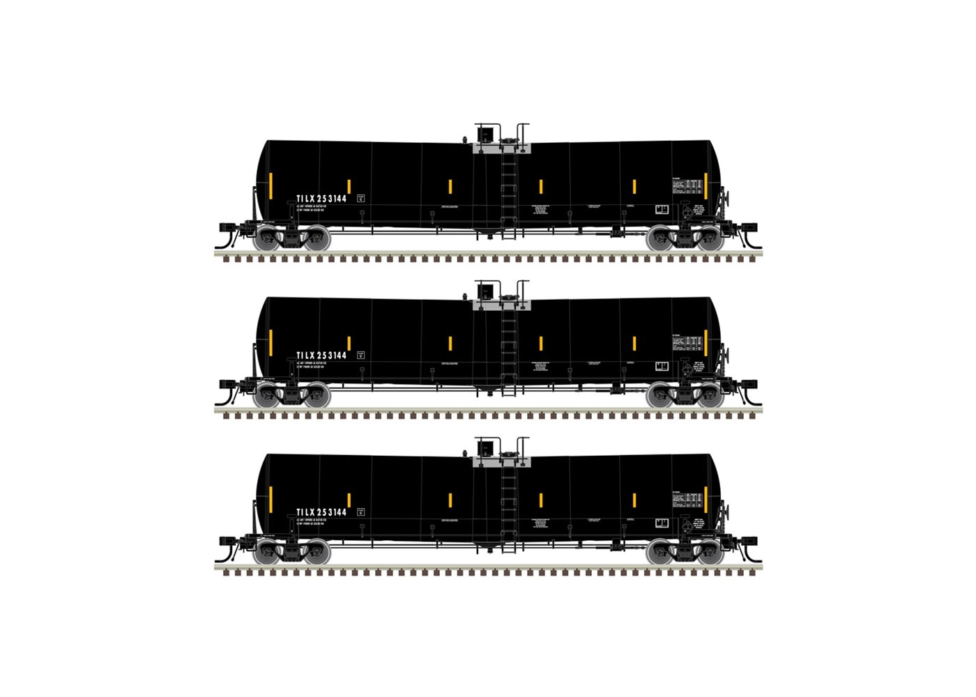 Atlas N Trinity 25,500-Gallon Tank Car 3-Pack - Ready to Run -- Atlas N Trinity Industries Leasing TILX #253152, 253176, 253189 (black, white, 2019