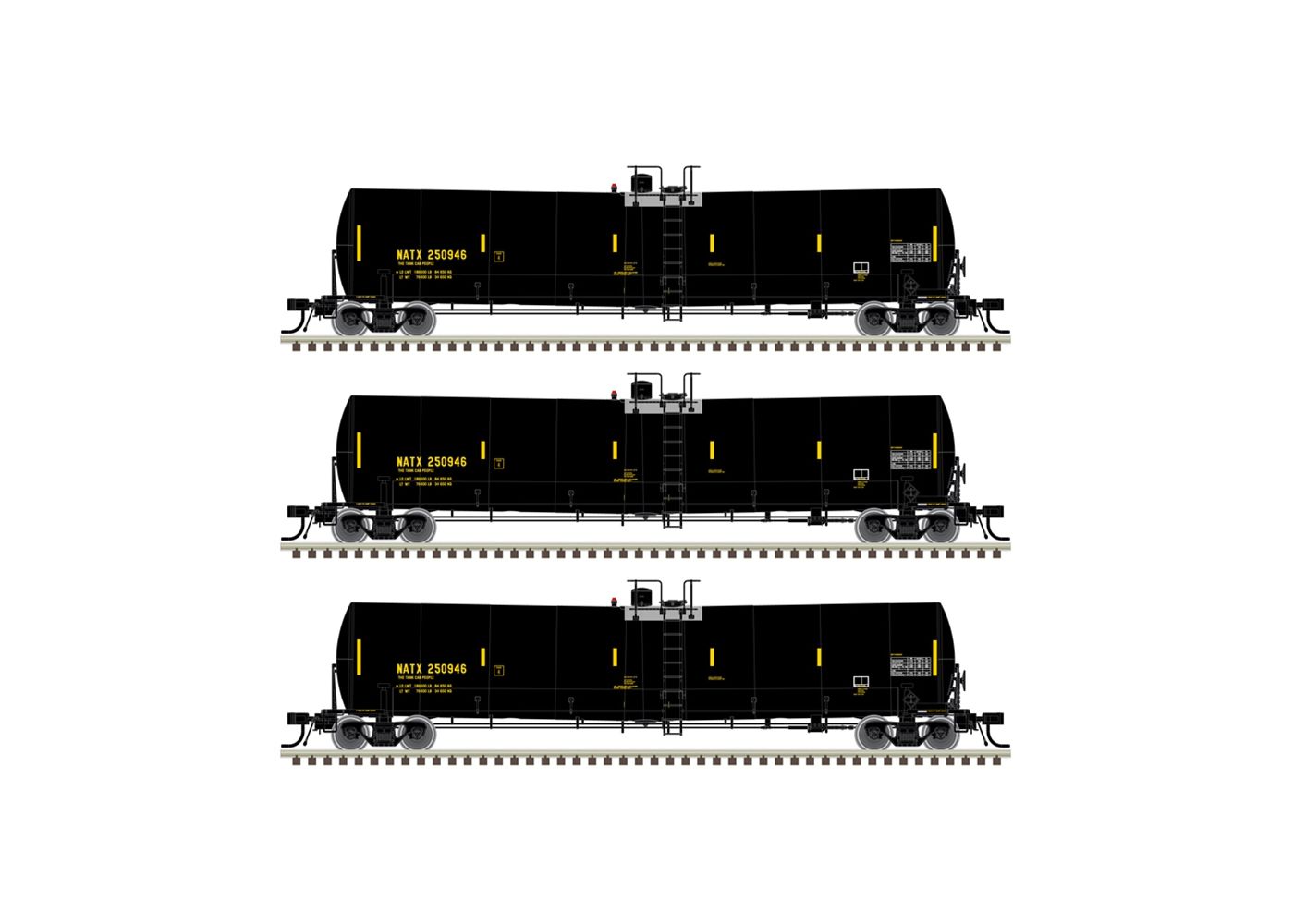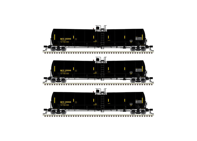 Atlas N Trinity 25,500-Gallon Tank Car 3-Pack - Ready to Run -- NATX #250951, 250972, 250986 (black, yellow UTCK repaint)