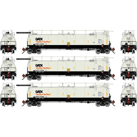 Athearn Genesis HO TankTrain Intermediate, GATX White/Black #75555/75556/75557 (3)