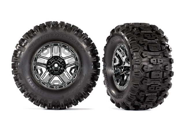 Traxxas 9072 Tires & Wheels, assembled, glued (black chrome 2.8' Wheels, Sledgehammer Tires, foam Inserts) (2) (TSM Rated) - TRA9072