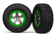 Traxxas 5865 Tires & Wheels, assembled, glued (SCT, chrome, Green beadlock Wheel, BFGoodrich Mud-Terrain™ T/A KM2 tire, foam Inserts) (2) (2WD Front only) - TRA5865