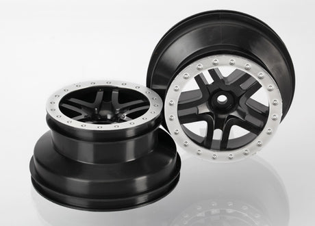 Traxxas 2480 Wheels, 2.2' (black, satin chrome beadlock) (2) (Bandit Rear)