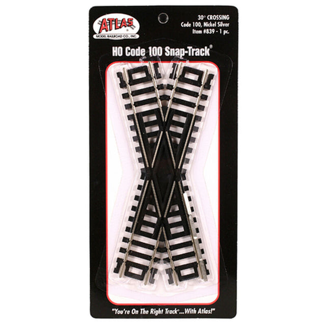 Atlas Snap Track Crossing -- 30 Degrees, Nickel-Silver Rail, Black Ties - ATL839