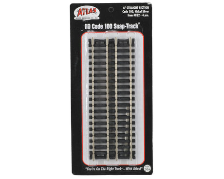 Atlas Straight Snap-Track(R) Nickel-Silver Rail -- 6" 15.2cm (Black Ties) pkg(4) - ATL822
