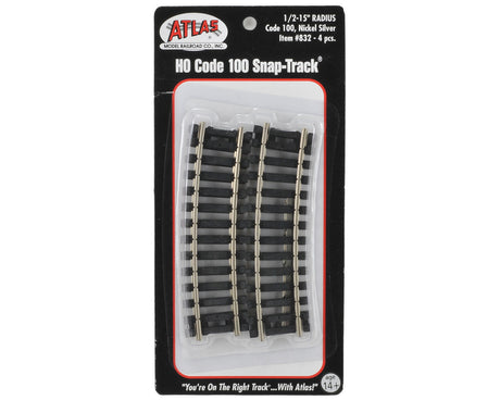 Atlas Code 100 Curved Snap-Track(R) Nickel-Silver Rail -- 15" Radius (Black Ties) pkg(6) - ATL831