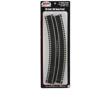 Atlas Code 100 Curved Snap-Track(R) Nickel-Silver Rail -- 18" Radius (Black Ties) pkg(6) - ATL833