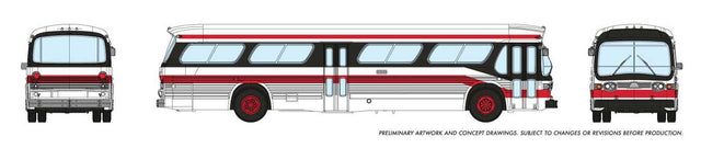 Rapido Trains 1959-1986 GM New Look-Fishbowl Bus with Working Headlights - Assembled -- Toronto (red, black, white) - RPI573007