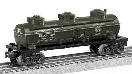 Lionel O 3-Dome Tank Car - 3-Rail - Ready to Run -- U.S. Army #8270 (olive, white, USATC Logo)