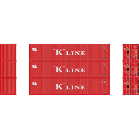 Athearn N 40' Corrugated Low-Cube Container,K Line # 1 (3) - ATH17392