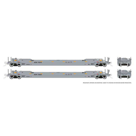 Rapido HO Gunderson 53' Husky Stack Well Car 2-Pack - Ready to Run -- Arkansas-Oklahoma AOK (gray)