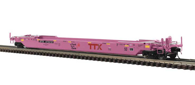 53' Rebuilt Well Car - 3-Rail - Ready to Run - Premier -- TTX DTTX #475412 (pink, Breast Cancer Awareness)