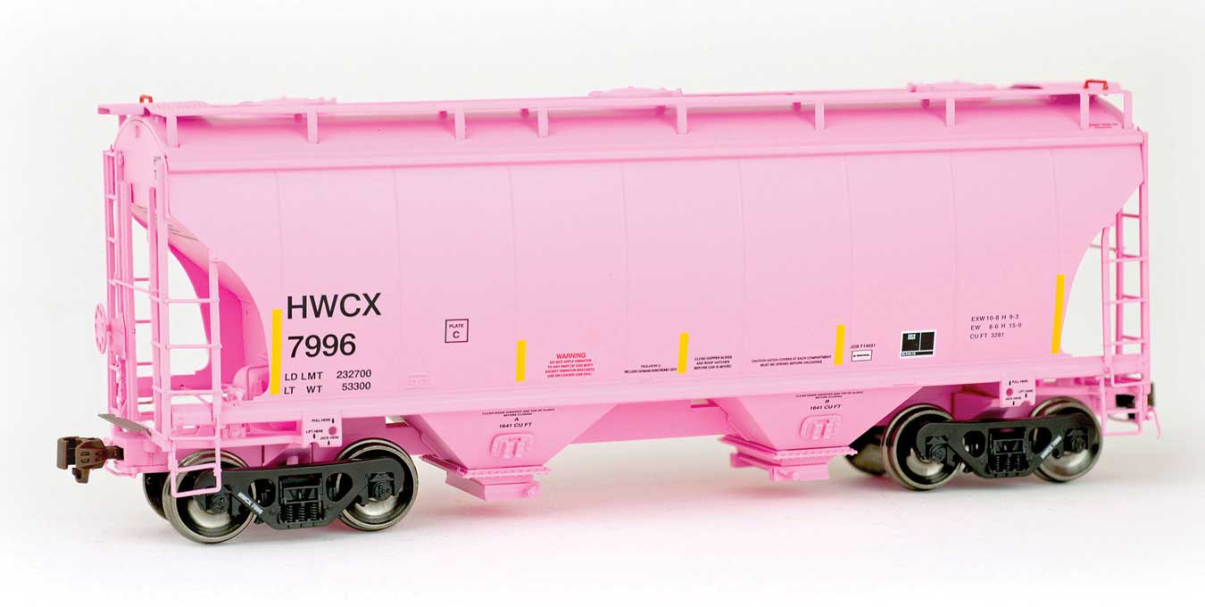 American Limited Models TrinityRail 3281 Cu.Ft. 2-Bay Covered Hopper - Ready to Run -- Halliburton HWCX #7996 (pink, yellow conspicuity marks) - 147-2033