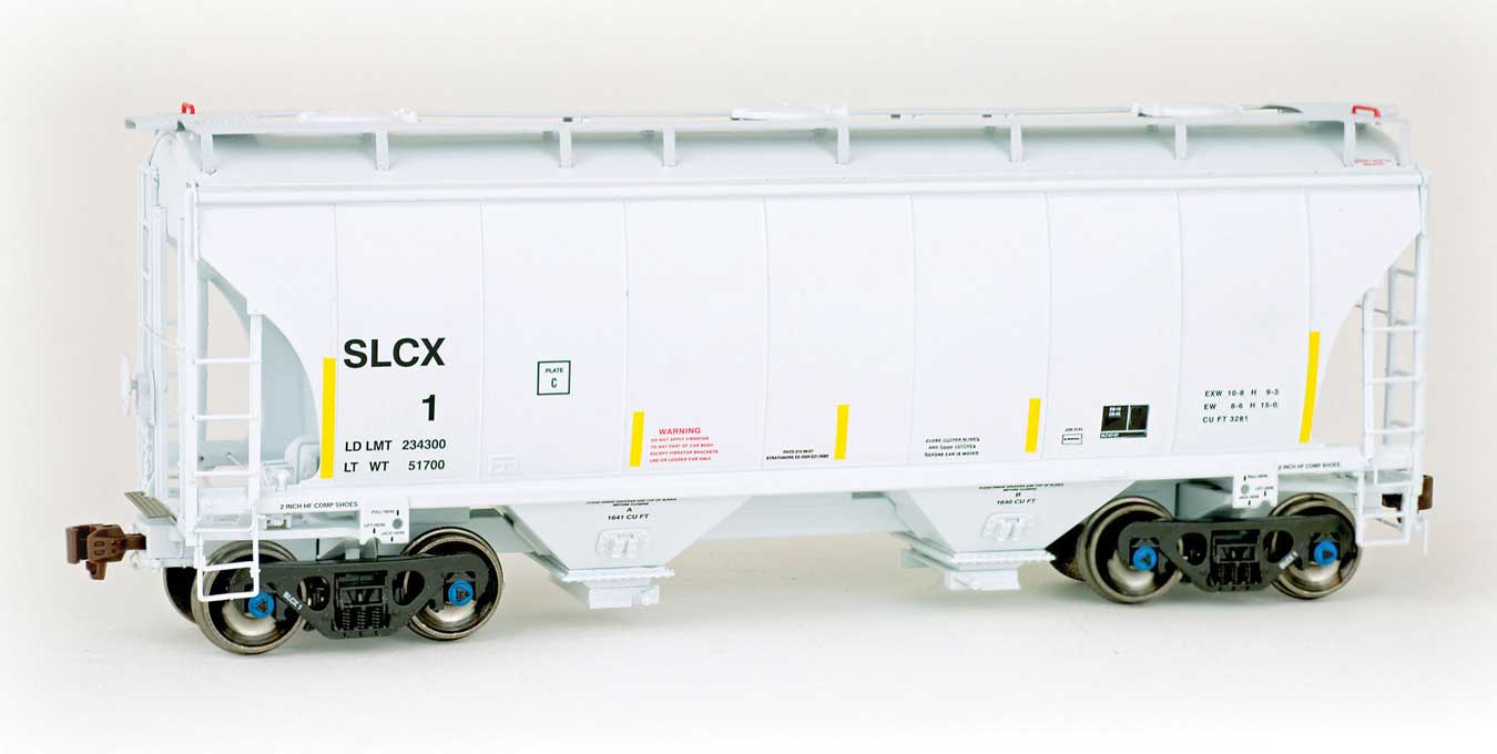 American Limited Models TrinityRail 3281 Cu.Ft. 2-Bay Covered Hopper - Ready to Run -- St Lawrence Cement SLCX #1 (2007, gray, yellow conspicuity marks) - 147-2006