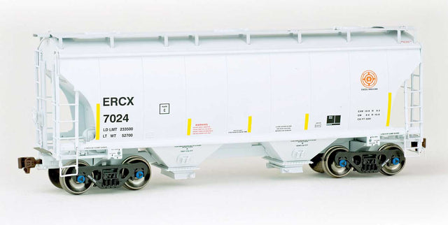 American Limited Models TrinityRail 3281 Cu.Ft. 2-Bay Covered Hopper - Ready to Run -- Excel Railcar ERCX #7024 (gray, red, yellow conspicuity marks) - 147-2004
