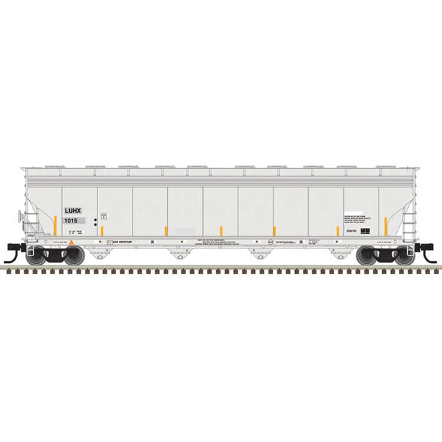 Atlas HO ACF 5800 4-Bay Covered Hopper - Ready to Run - Master(R) -- Luhu Logistics LUHX #1015 (gray, black, yellow conspicuity marks)