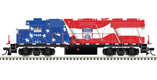 Atlas HO EMD GP38 Low Nose w/Ditch Lights - Standard DC - Master(R) Silver -- Florida, Gulf & Atlantic Railroad #5571 (red, white, blue)