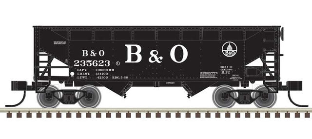 Atlas N 2-Bay Offset-Side Hopper with Flat Ends & Load - Ready to Run - Master(R) -- Baltimore & Ohio 235623 (black, white)