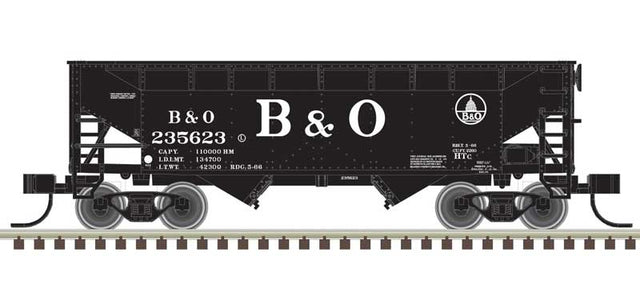 Atlas N 2-Bay Offset-Side Hopper with Flat Ends & Load - Ready to Run - Master(R) -- Baltimore & Ohio 235644 (black, white)