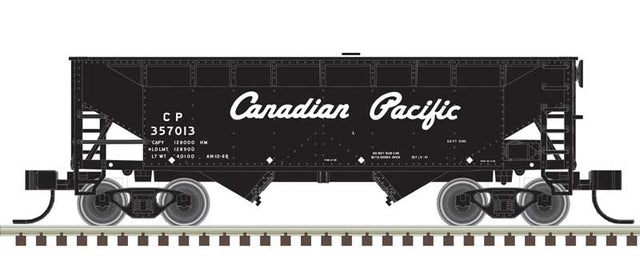 Atlas N 2-Bay Offset-Side Hopper with Flat Ends & Load - Ready to Run - Master(R) -- Canadian Pacific 357018 (black, white, Script Lettering)