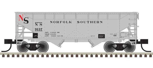 Atlas N 2-Bay Offset-Side Hopper with Flat Ends & Load - Ready to Run - Master(R) -- Original Norfolk Southern 9137 (gray, black, red)