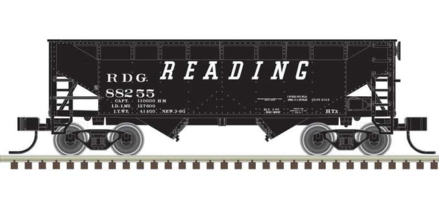 Atlas N 2-Bay Offset-Side Hopper with Flat Ends & Load - Ready to Run - Master(R) -- Reading 88203 (black, white)
