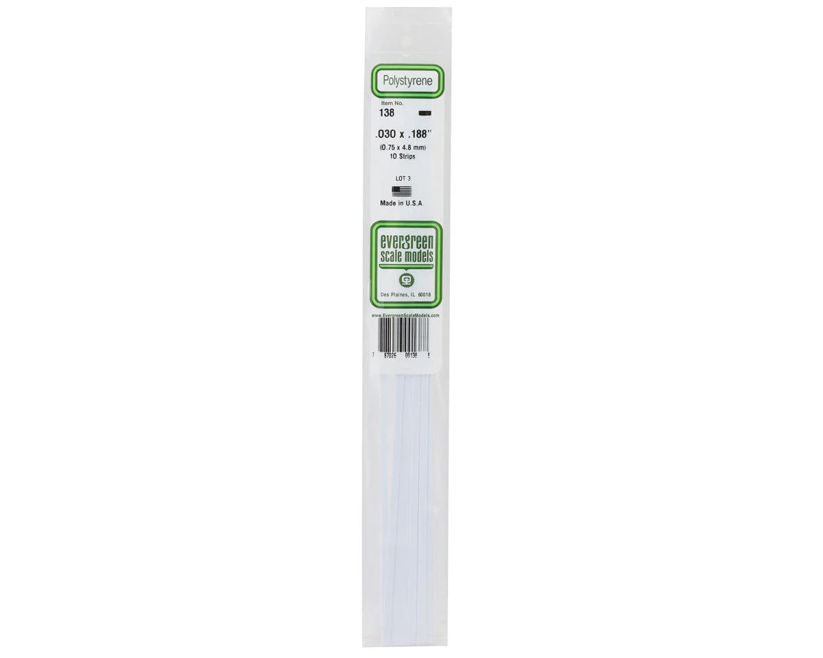 Evergreen Styrene Strip .030" Thick - 14" Long; pkg(10) -- x .188"