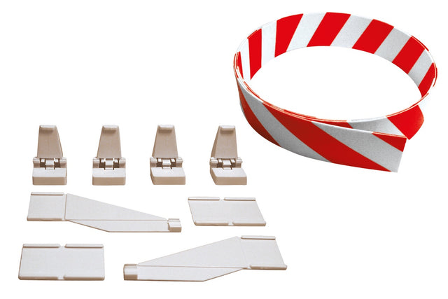 Contains 3m (approximately 10ft) of guardrail, 24 supports 24, 6 guard rail connecting pieces, 12 end pieces