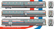 Kato HO Viewliner II Set - 2 Sleepers, Diner, Baggage-Dorm - Ready to Run -- Amtrak (Phase III; silver, red, white, blue)