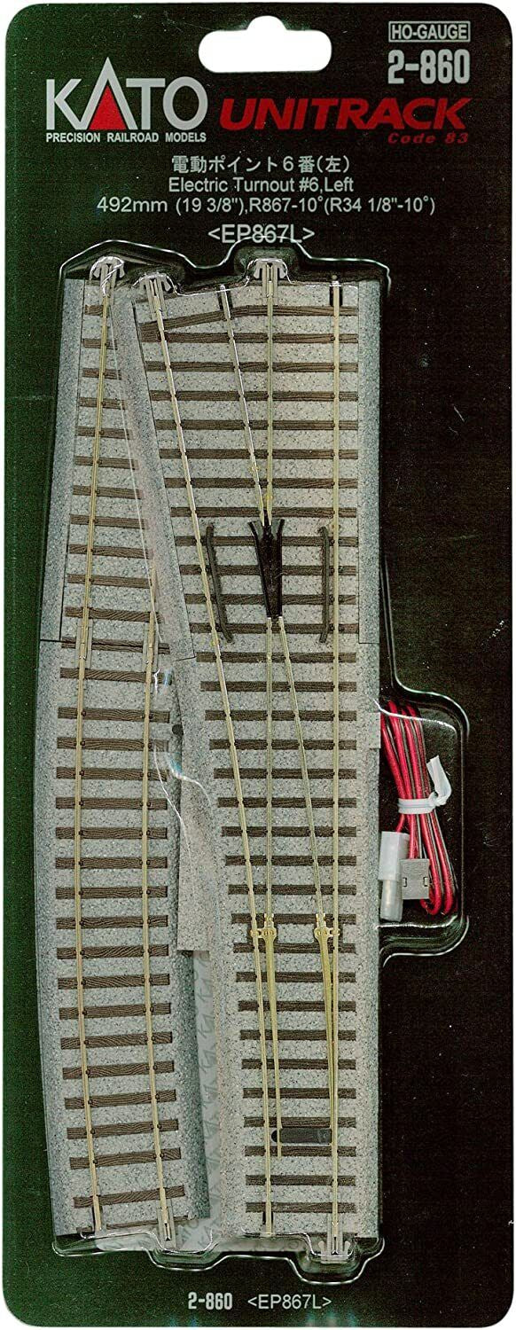 Kato Unitrack - Powered Turnout -- #6 Left Hand - 19-3/8" 492mm; 34-1/8" 867mm Radius - KAT2860