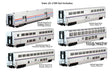 Kato Viewliner Baggage & 5 Superliner Car Bookcase Set -- Amtrak (Phase VI, silver, blue red) - KAT101789