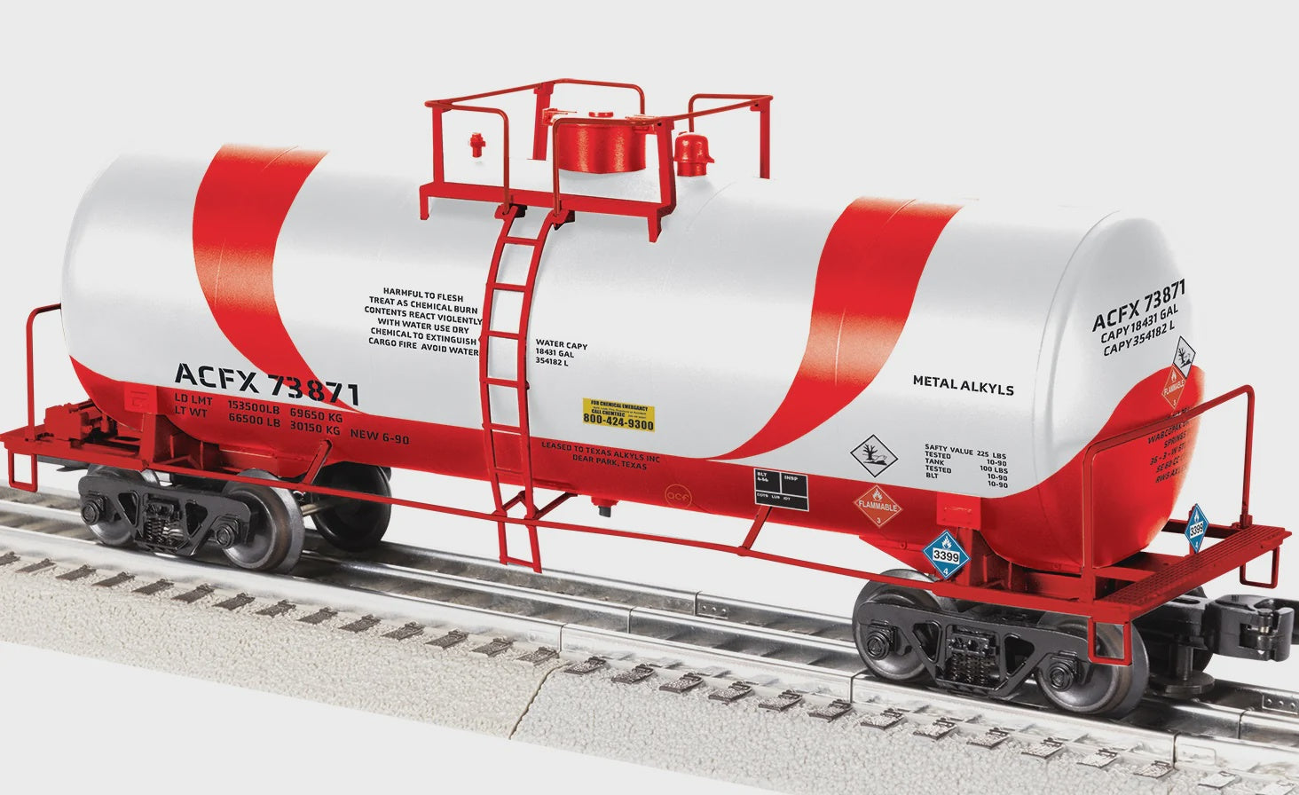 Lionel 2542352 ACF 40' Frameless Tank Car - 3-Rail - Ready to Run -- ACFX #73871 (white, red)