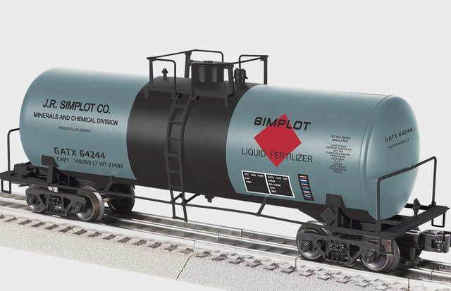 Lionel 2542401 ACF 40' Frameless Tank Car - 3-Rail - Ready to Run -- JR Simplot GATX #64244 (gray, black, red)