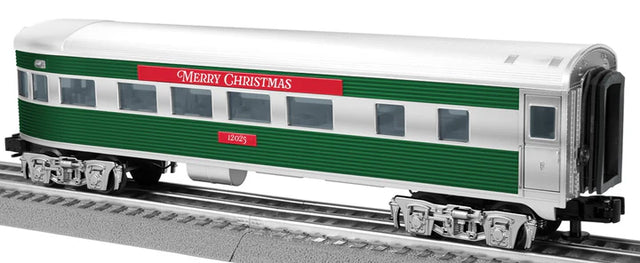 Lionel O 13" Streamlined Observation - Lighted - Ready to Run - 3-Rail -- Christmas #12025 (silver, green, red)