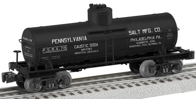Lionel O 8,000-Gallon Tank Car - 3-Rail - Ready to Run -- Pennsylvania Salt PSMX #715 (black, white)