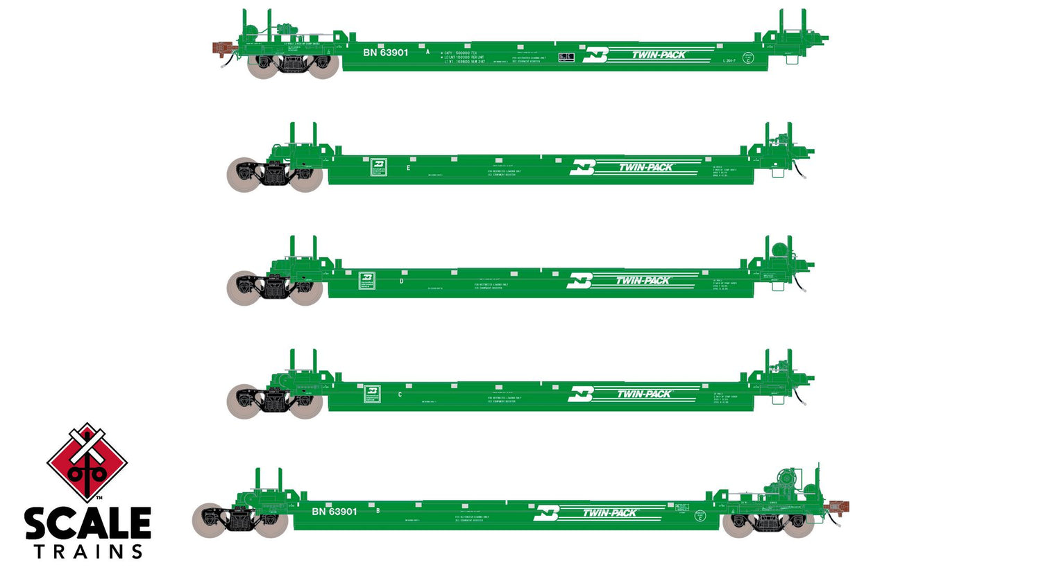 Rivet Counter HO Scale Pullman-Standard Trinity Backpacker Well Car Set - Burlington Northern / BN #63909