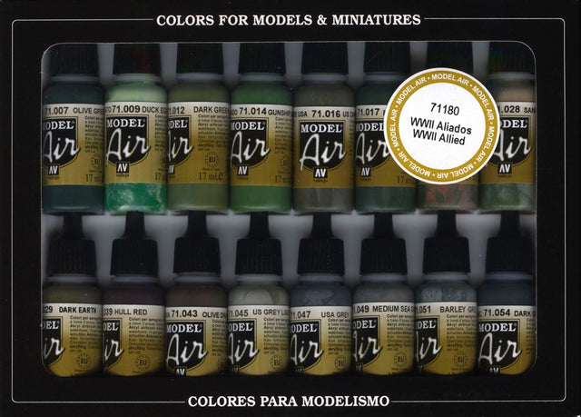 Vallejo 17ml Bottle WWII Allied Forces Model Air Paint Set (16 Colors) - 71180